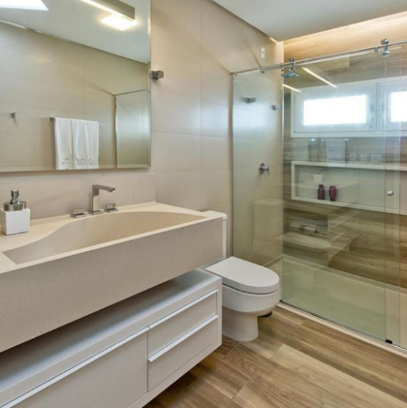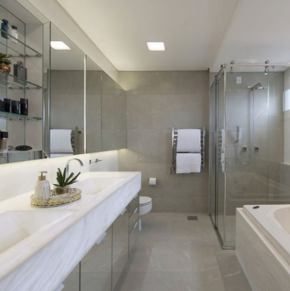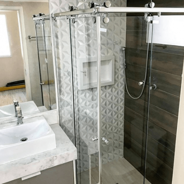 • Box de canto – formando um angulo de 90 graus, o box de canto é ideal para banheiros de espaços médios. Muitas vezes feitos com portas em vidro e sistema de correr.
