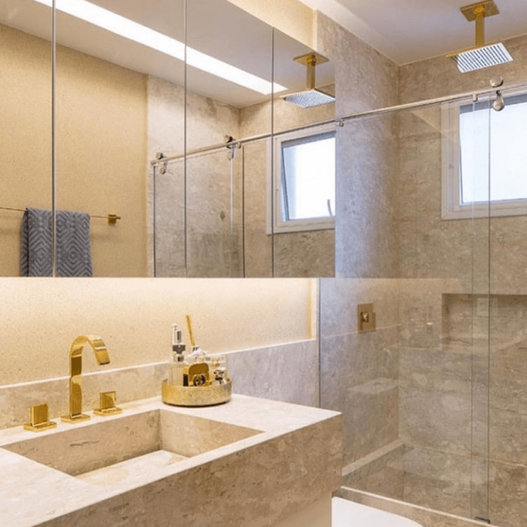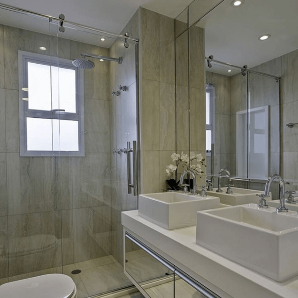 Selecionamos 10 banheiros produzidos por arquitetos que você pode ter em casa. São modelos pensados para utilizar o Box de correr, com roldana aparente, latão cromado super resistente.