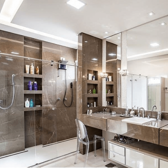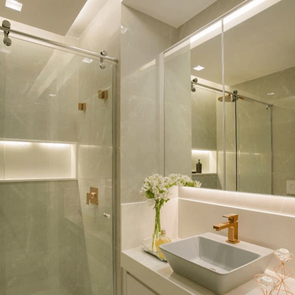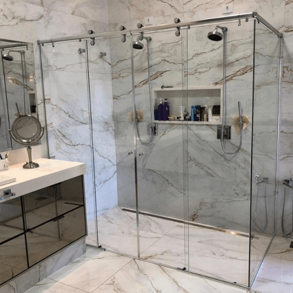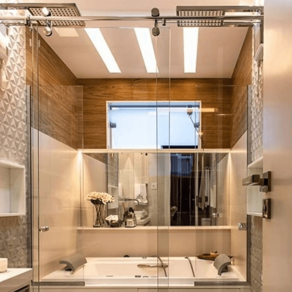 Selecionamos 10 banheiros produzidos por arquitetos que você pode ter em casa. São modelos pensados para utilizar o Box de correr, com roldana aparente, latão cromado super resistente.