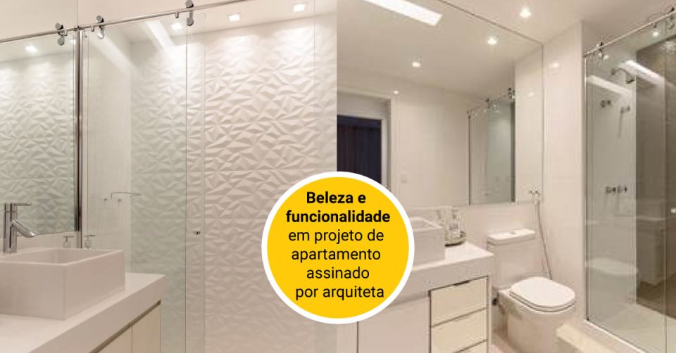 Os banheiros foram cômodos de destaque e, apesar de possuírem pouco espaço – 3,20m² cada um –, tiveram um projeto que atingiu o objetivo dos moradores . O uso de revestimento em 3D na parede da área de banho, em branco no banheiro de hóspede, e em marrom no banheiro de visitas, trouxe charme ao local.